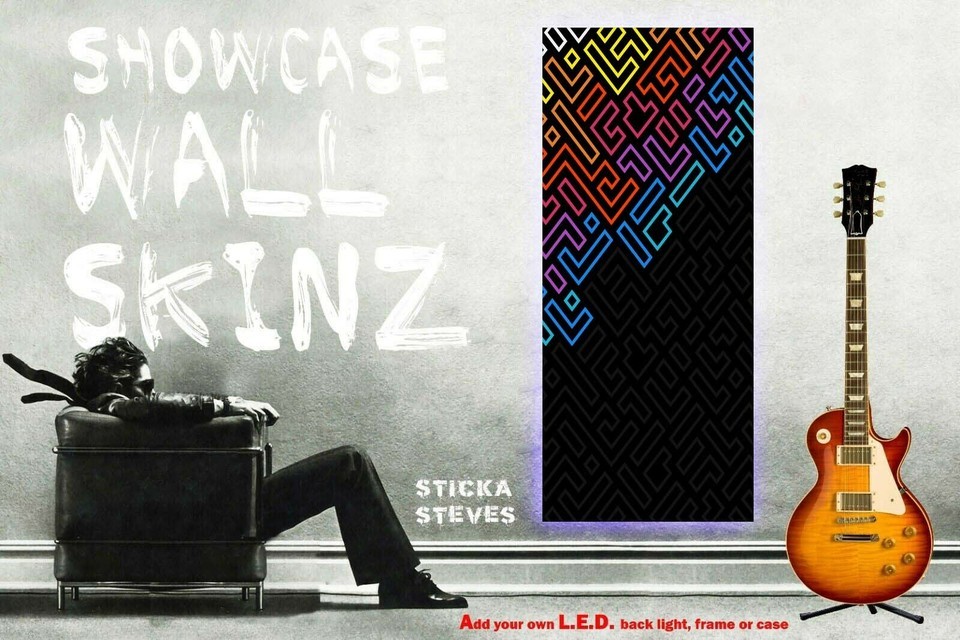 Utilize our Showcase Skinz to further customize your display cabinets, alcoves, guitar case, coffee table or just Sticka it to your wall.