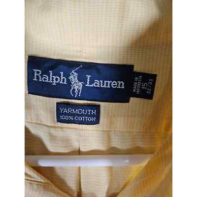 Ralph Lauren Polo Men's Long Sleeve Button Down Polo Yellow Plaid Size 15 32/33