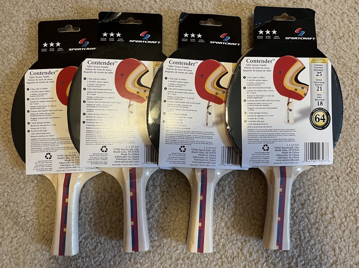 NIB BRAND NEW! SPORTCRAFT CONTENDER Table Tennis PING PONG Paddle Lot of 4