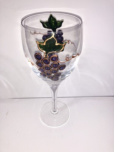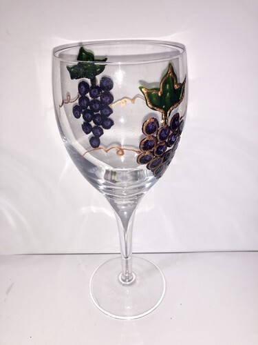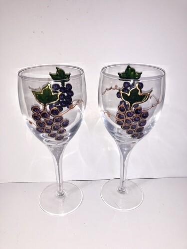 Set Of 2 Hand Painted Grape Wine Glasses 8” and similar items