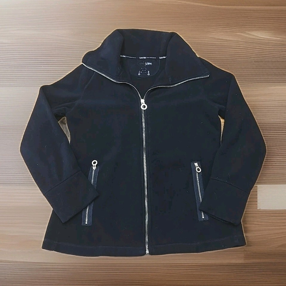 The Calvin Klein Performance Zip Up Fleece for women in size medium is a stylish activewear piece in black with gold accents. Made of 100% polyester fleece, this long sleeve jacket features a solid pattern, collared neckline, zip closure, and logo accents. The jacket is machine washable and designed for activities such as gym training, walking, and running. With a regular fit and full zip style, it is perfect for outdoor workouts during the winter, fall, or spring seasons. This Calvin Klein Performance piece is a classic addition to any woman's wardrobe for a touch of luxury and style in her activewear collection.
