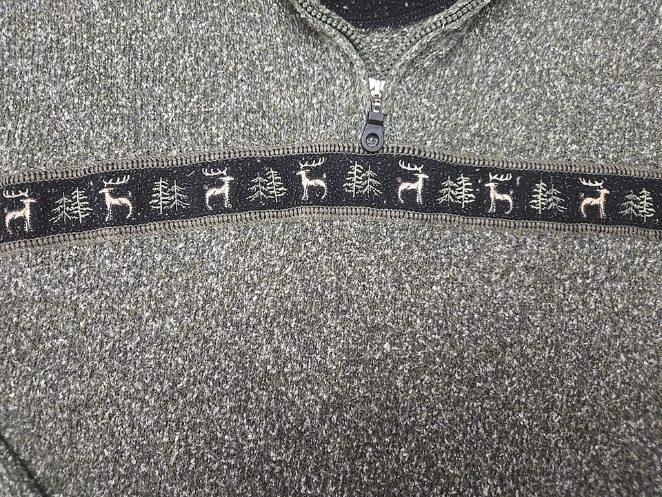 Woolrich Vtg 90s Fleece Sweater Womans Sz XL Olive Green Christmas Tree Deer