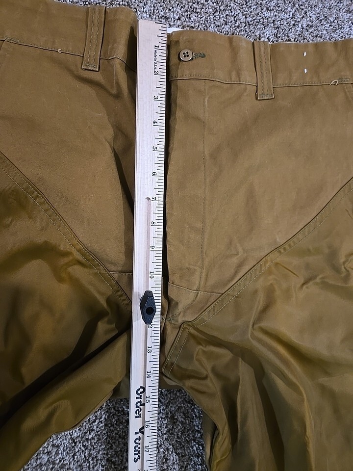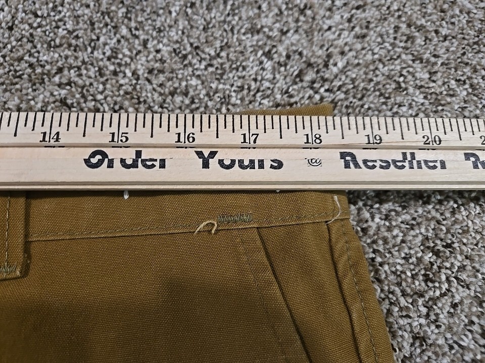 The Duxbak Vtg Aero Cloth Canvas Hunting Double Knee Pants in Men's size 36x28 are a vintage piece of outdoor clothing designed for hunting. Made with a durable canvas nylon fabric in a khaki color, these trousers feature a button zip closure and a regular fit. The Desert pattern adds a stylish touch to this functional and rugged piece, perfect for any outdoor adventure. Ideal for the avid hunter, these vintage Duxbak pants are a timeless addition to any hunting gear collection. Made in the United States by the trusted brand Duxbak, these pants combine quality craftsmanship with a classic design.