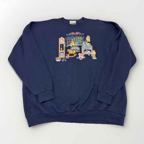 Tultex Vintage Crewneck Sweatshirt Womans Size XL Grandma Cottagecore Navy Blue