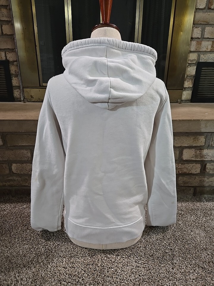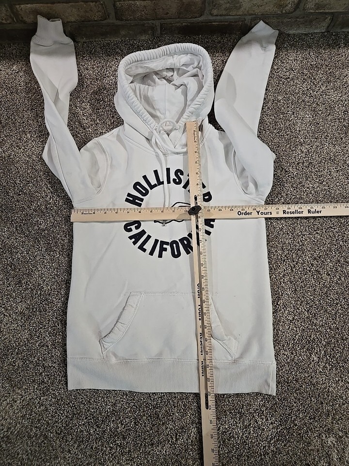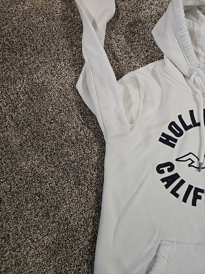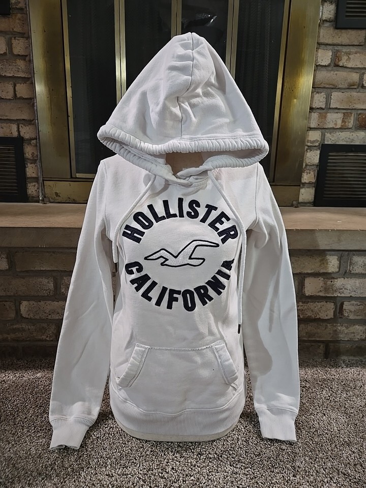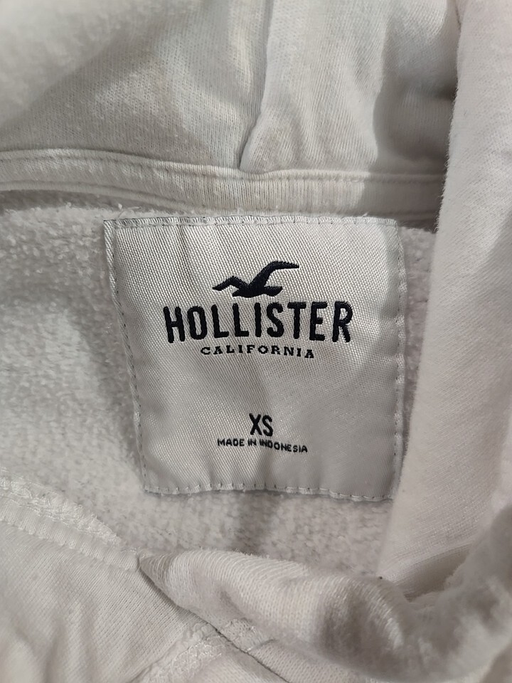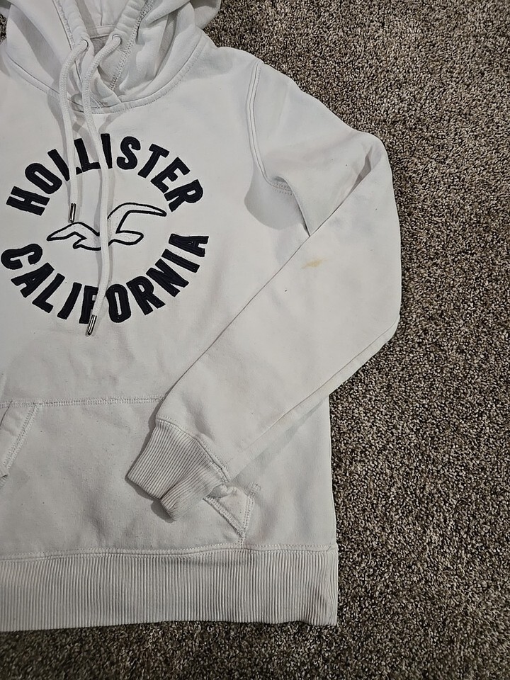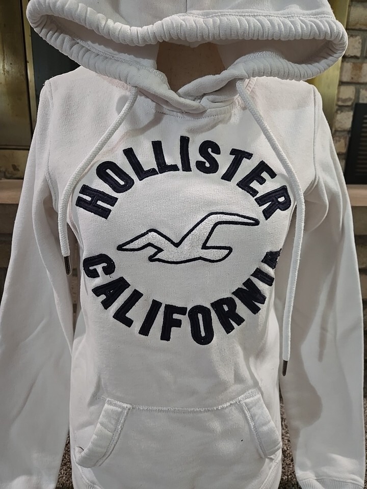 The Hollister California Logo Hoodie Sweatshirt in women's size XS is a stylish and comfortable pullover featuring the iconic Hollister logo as an accent. The white color adds a clean and classic touch to the sweatshirt, perfect for casual or activewear occasions. With its crew neck neckline, this hoodie is ideal for surfers and those inspired by a grunge or preppy style, offering a trendy and laid-back look for everyday wear.