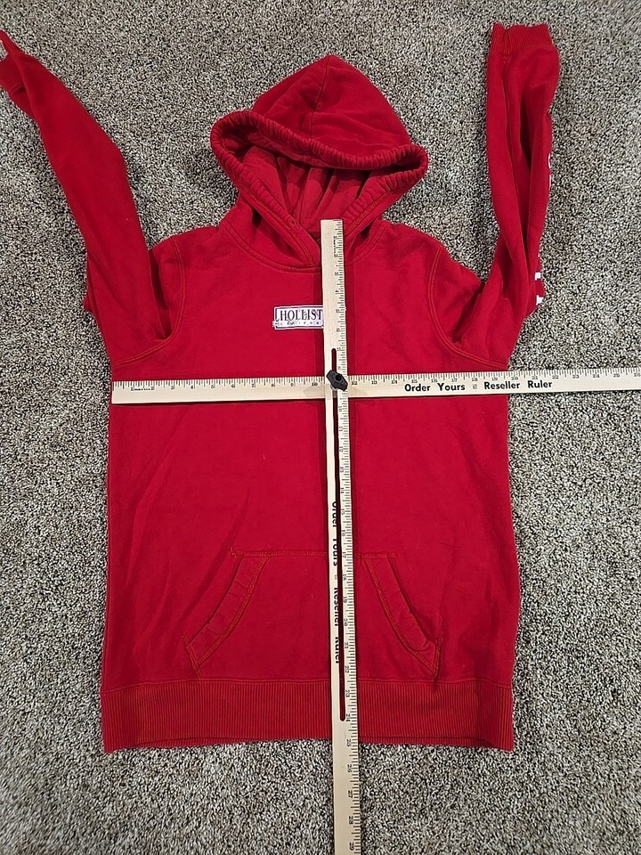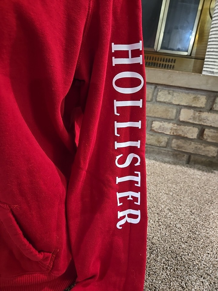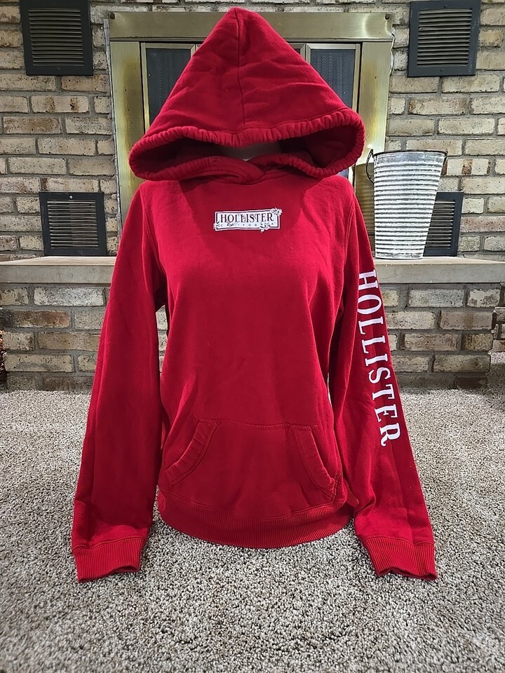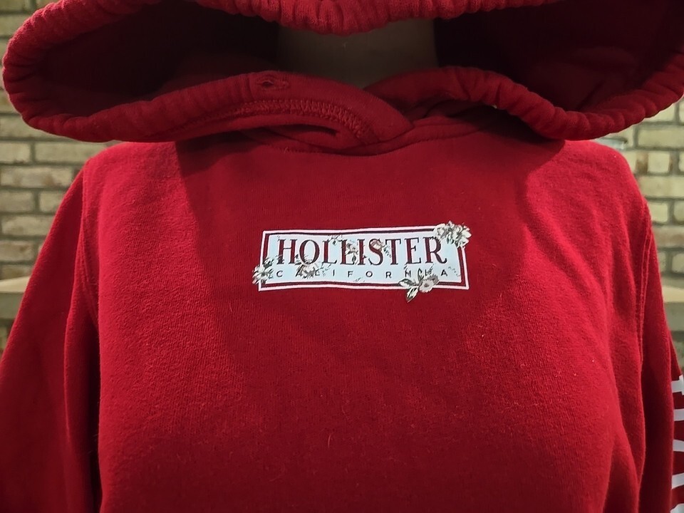 Hollister California Hoodie Sweatshirt Womens Sz Medium Red Floral Sleeve Logo