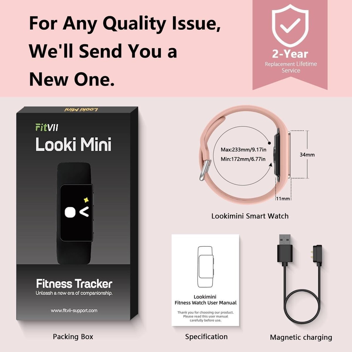 Stay motivated and track your fitness journey with the FITVII Looki-mini Fitness Tracker.