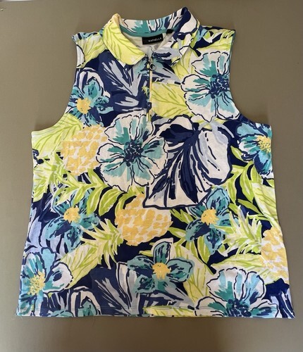 Elevate your wardrobe with this stylish and trendy Rafaella Women's Fashion Top. This sleeveless blouse features a ceramic color with a unique 1/4 zipper accent, adding a touch of sophistication to your outfit. Available in size 2XL and designed for plus size women, this top is perfect for any occasion. The brand speaks for itself, with a reputation for quality and style. Ideal for any fashion-forward woman, this top is a must-have in your collection.