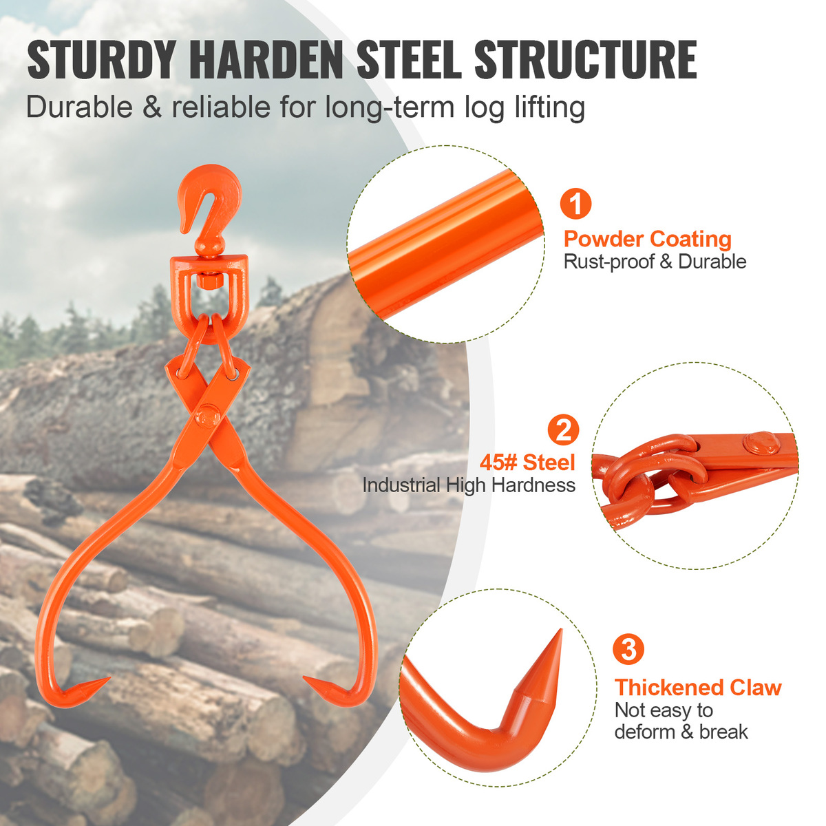VEVOR Log Skidding Tongs, 18 inch, 2 Claw, Rotating Steel Lumber Skidding Tongs