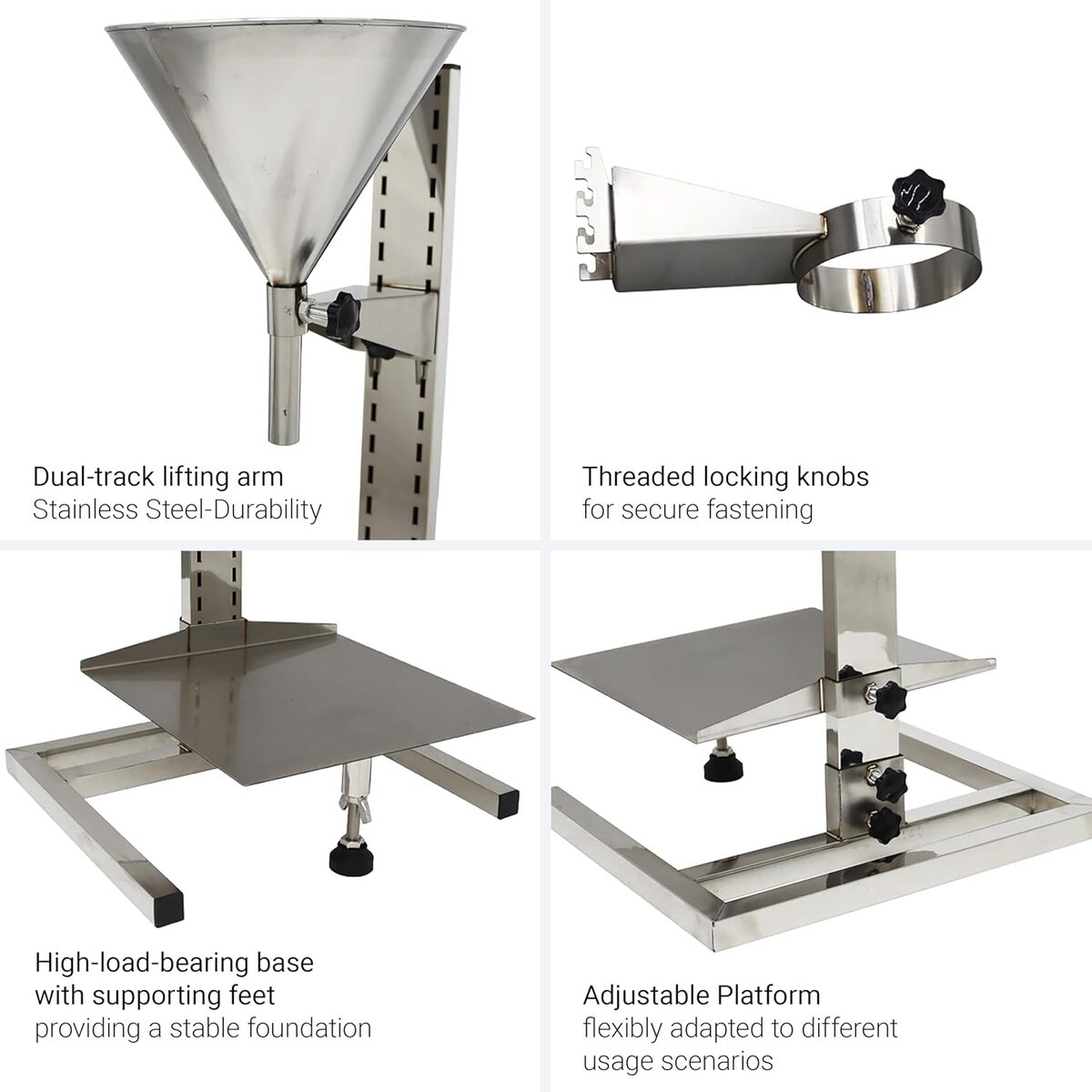 11.8/4.7inch Stainless Steel Feeding Hopper with Support Stand Filling Funnel