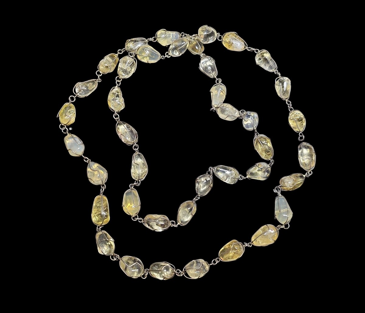 Vintage Sterling Silver Yellow Quartz Nugget Necklace 42” Artisan Opera