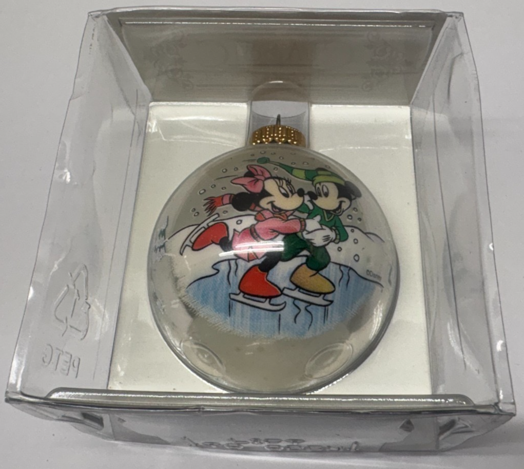 Disney Topperscot Mickey & Minnie Ice Skating Glass Ball Ornament NRFB