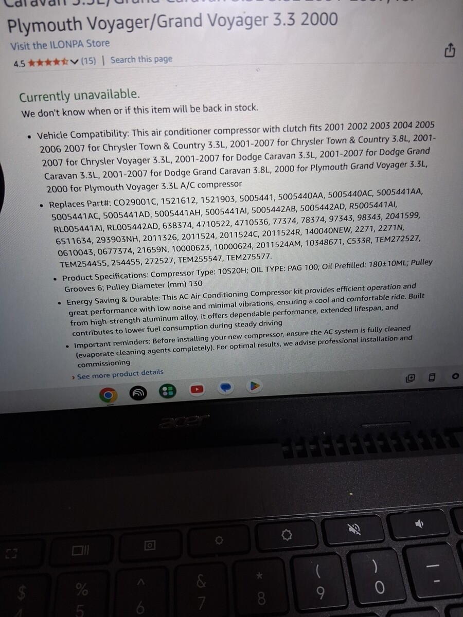 A/C Compressor CO 29001C 2001 2002-2006 2007 For Chrysler Dodge Grand Carava