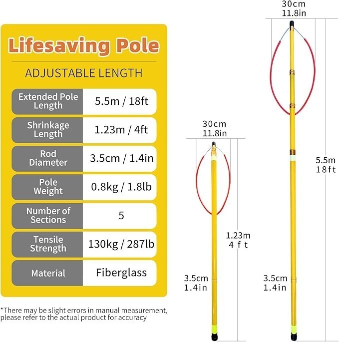 3-Second Child Pet Rescue??: Deploy our ??pool rescue hook?? in 3 seconds via rotating lock?snag clothing 5 -18ft away with the ??fiberglass telescoping pole?? while staying safely poolside. Every second counts when saving kids/pets.