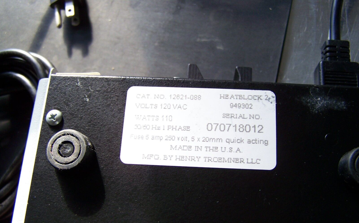 This Henry Troemner Heatblock 2 Digital Dry Dual Block Heater 949302 12621-088 is in excellent, like new condition, has been tested and is guaranteed to be fully functional. This item came from a local lab that had surplus lightly used equipment. Please feel free to contact us with any questions.