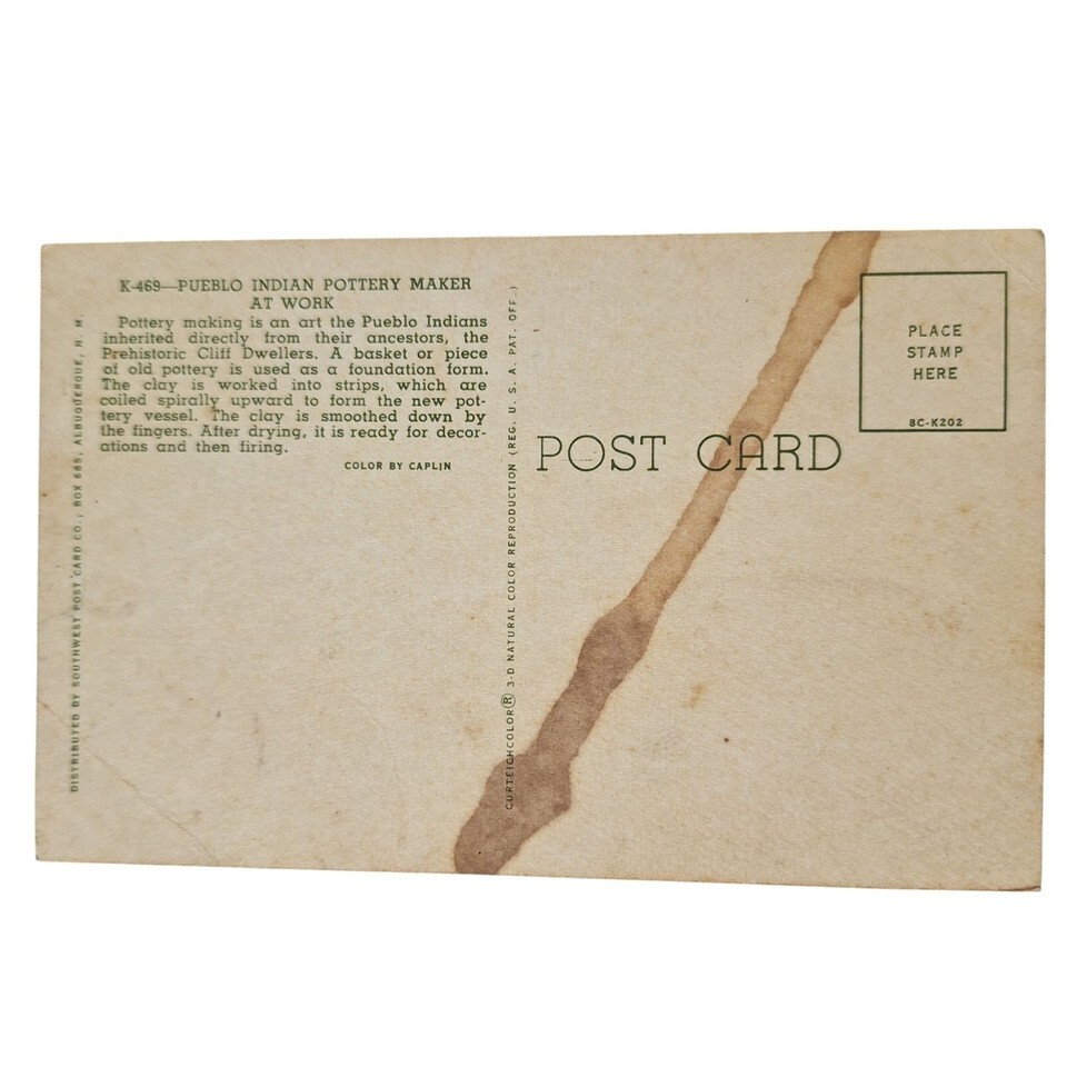 Postcard Pueblo Indian Pottery Maker At Work New Mexico Chrome Unposted