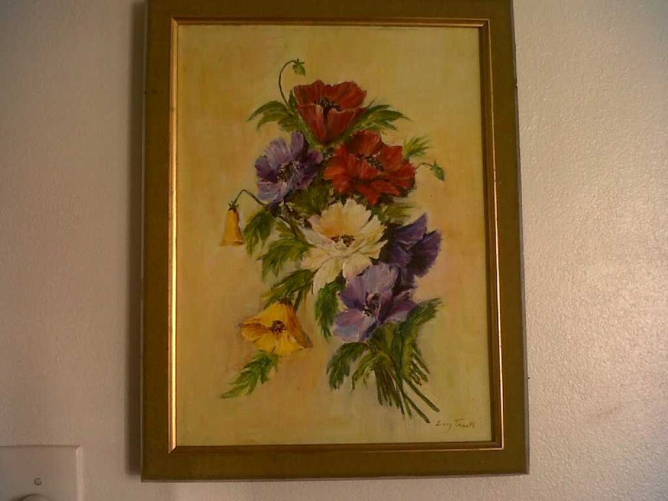 Original painting Flowers Lucy Trauth listed Santa Monica artist 14x18 '70