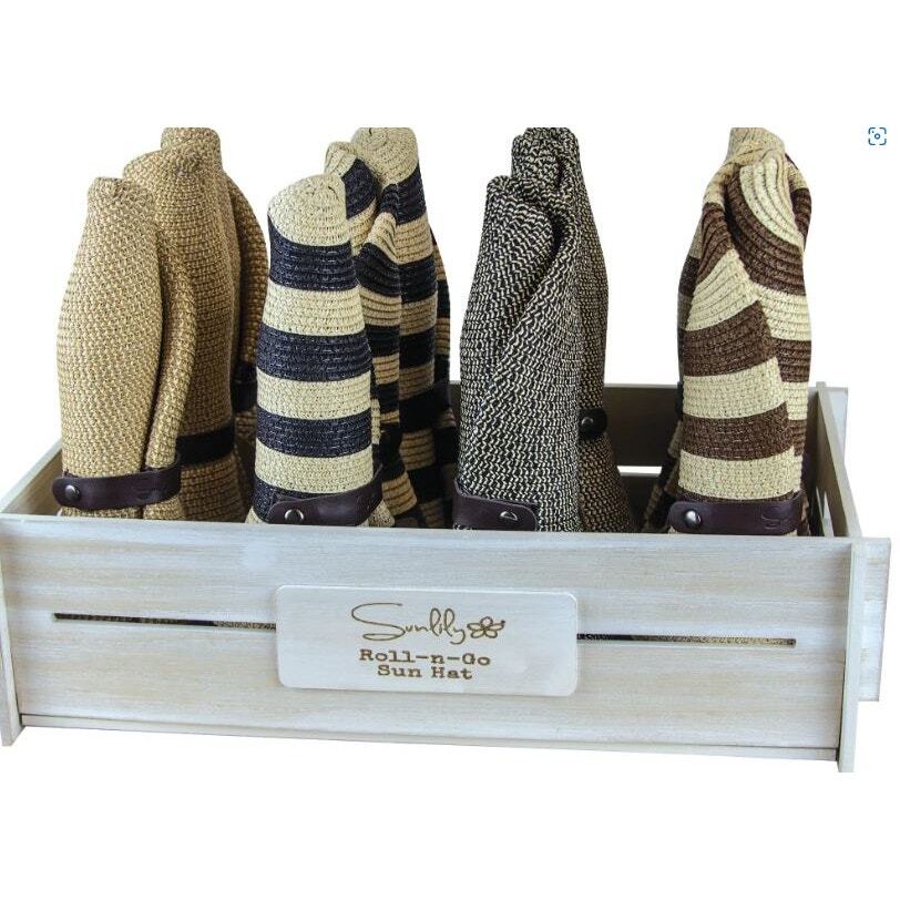 Sun hats are difficult to travel with. They tend to be misshapen and wrinkled once you get to where you're going. They never pack well flat. But wait, now there's a solution. Just roll - snap - go with the new Roll-n-Go Sun Hat. A revolutionary design that allows you to roll the sun hat tight so it's easy to pack. The braided leatherette roll strap with snap also doubles as a decorative addition.