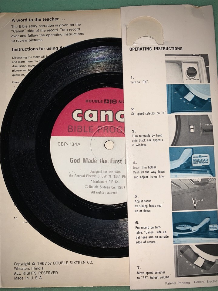 This vintage "God Made The First Family Show'N Tell Picturesound Program Record Film" is a rare find for collectors of Disneyana and vintage records. Made in the United States in 1970, this item features a unique collaboration between GE SHOW AND TELL and Disney's franchise.