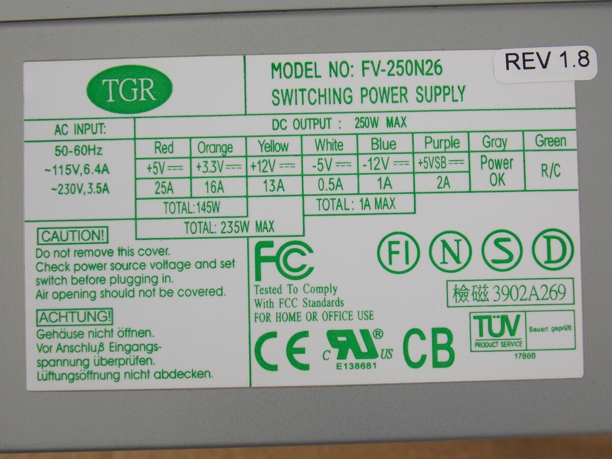 Vintage Micron ClientPro desktop PC tower power supply model FV-250N26