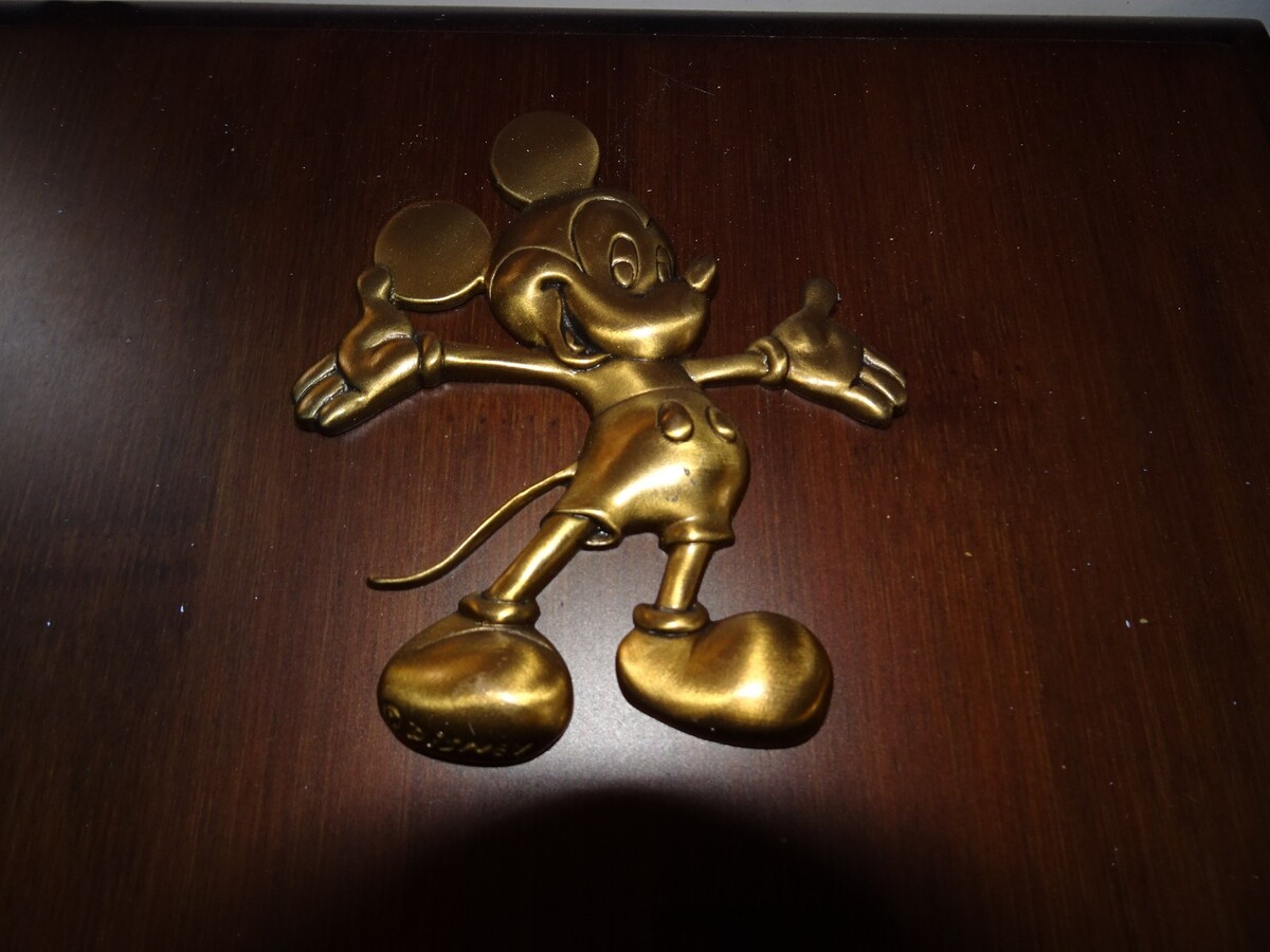 Original Walt Disney Company 10 Year Service Award plaque, featuring a raised Mickey Mouse figure mounted on a wood plaque with an engraved brass plate.