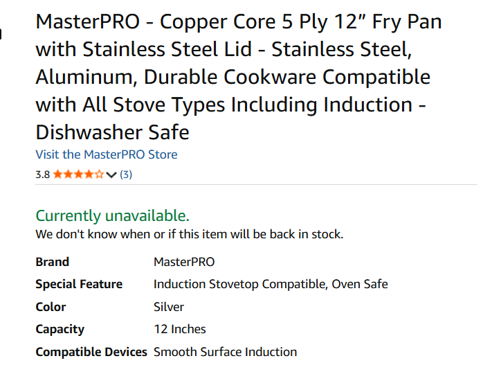 MasterPRO - Copper Core 5 Ply 12" Fry Pan and similar items