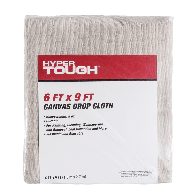 The Hyper Tough Canvas Drop Cloth is a great multipurpose drop cloth for when you're doing projects around the house. Use for painting, home improvement projects, upholstery, furniture, and curtains. Also good for shower protection, staining, outdoor covering, leaf removal, and more. This heavyweight and durable drop cloth ensures you can cover, protect, and create what you need. The six-foot by nine-foot extra-large size is big enough to handle any paint or home improvement project. Protect floors, carpets, furniture, and equipment with this pre-washed drop cloth, and it allows for quick and easy cleanup. Make home improvement projects a little easier when you have the Hyper Tough Canvas Drop Cloth on hand.