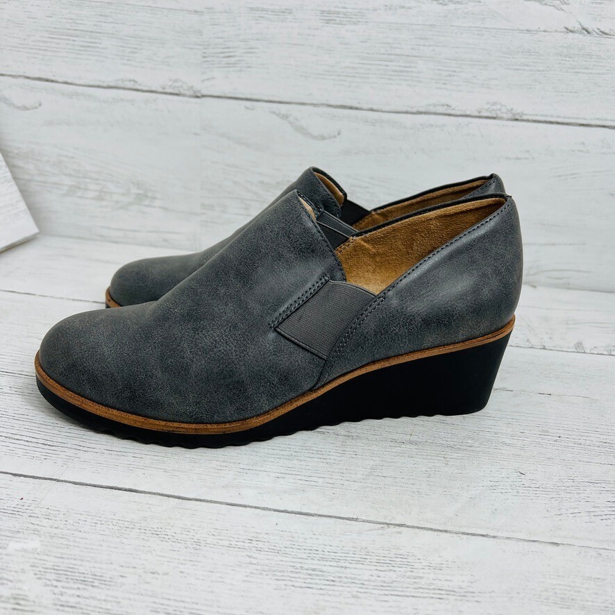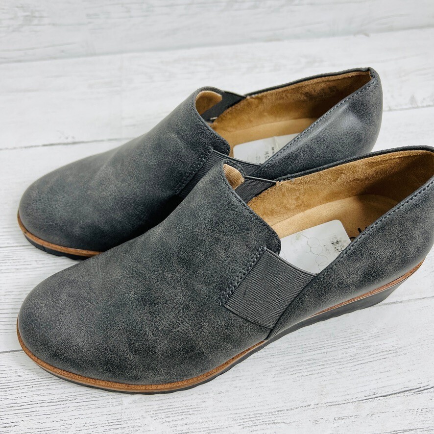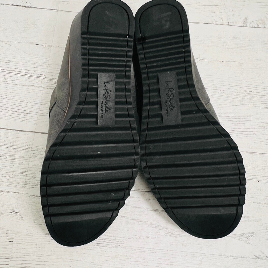 Life Stride Zora 7.5W Shoes Wedge Slip On Gray Elastic Comfort