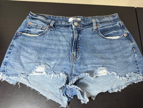 Denizen Levi's 90s Loose Shorts Women 14 W32 Blue Jean Denim Fringe 5 Pocket Zip