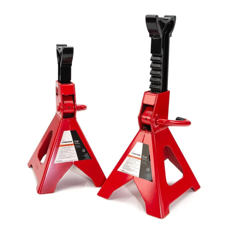 Prop up vehicles like cars, trailers, light trucks, SUVs, light vehicles and more for a variety of repair tasks and maintenance services with a pair of STEELMAN 99014 General Duty 3-Ton Capacity Jack Stands. Made from sturdy welded steel for superior strength and designed to with a wide, contoured saddle, these rugged stands can support vehicles weighing up to 3-tons (6,000-pounds). The easy to operate ratcheting mechanism slides out and into place easily with a simple lever operated release (will not release when under load). Ideal for use when higher support is needed with an adjustability range of 11-3/8-inches to 16-7/16-inches making it perfect for use in any home shop, professional garage or a mobile repair rig.