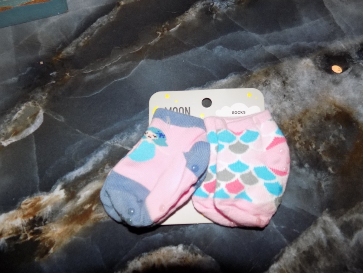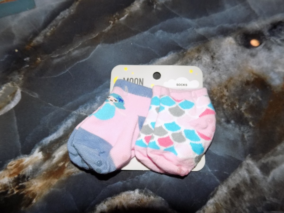 Moon And Stars Mermaid & Mermaid Scales Non- Slip Grip Sock Shoe Size 0-5 Infant