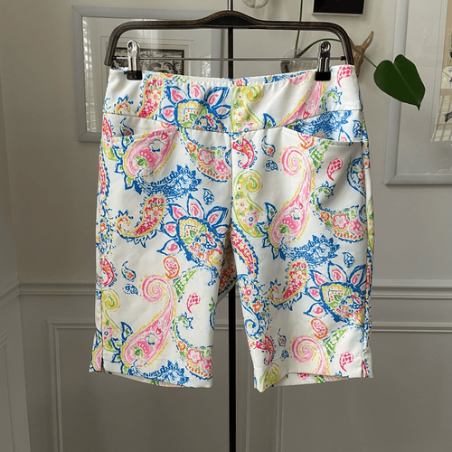 IBKUL SHARON WHITE MULTICOLORED PAISLEY PULLON GOLF SHORTS