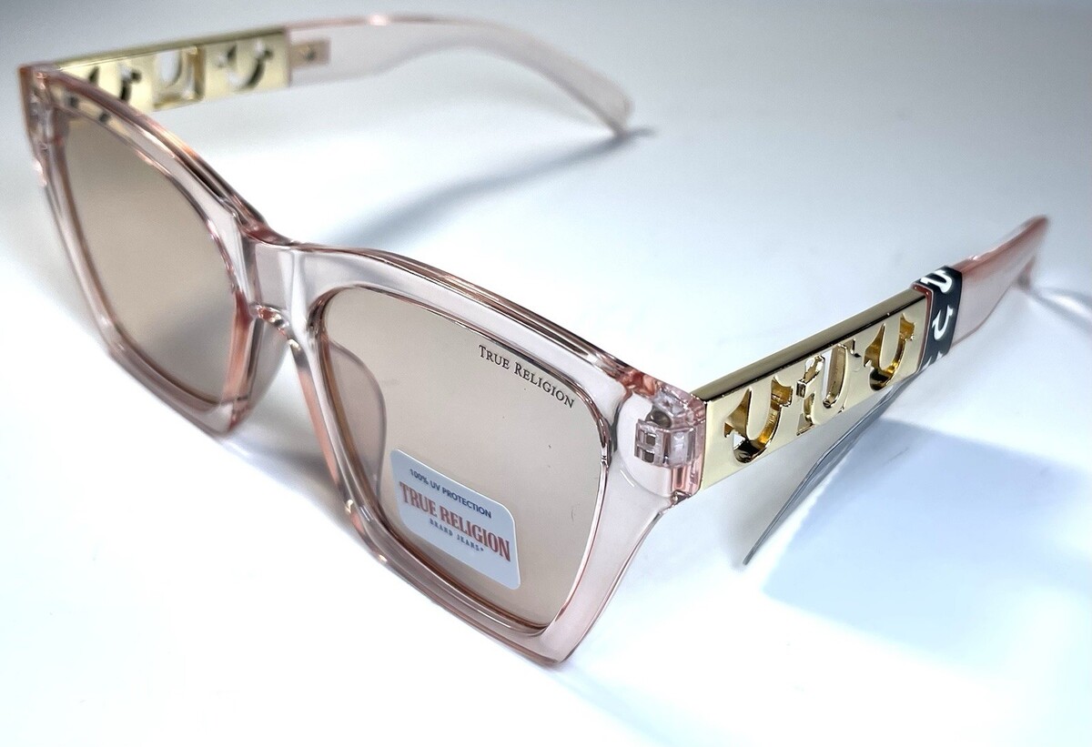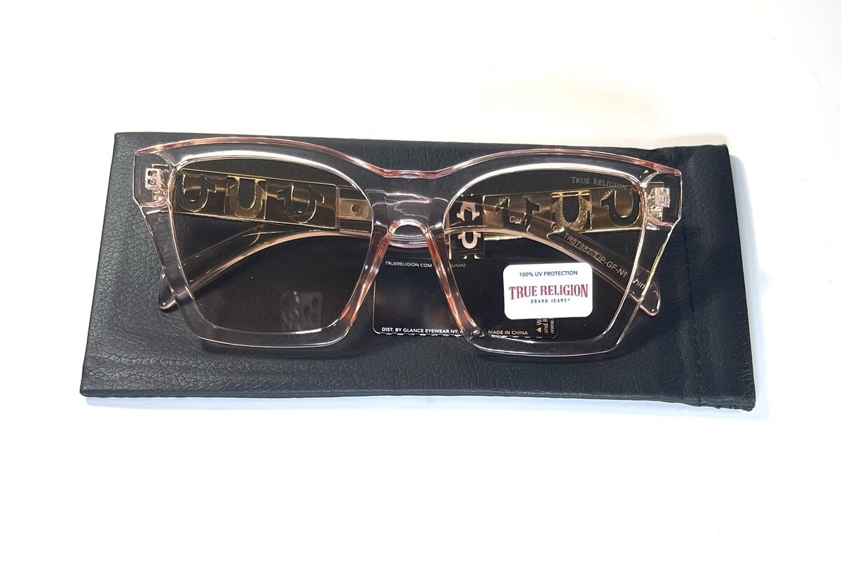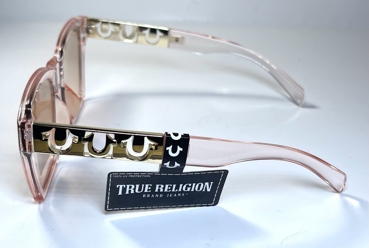 NEW TRUE RELIGION Transparent Peach Logo Designer TR57982 Sunglasses + Case