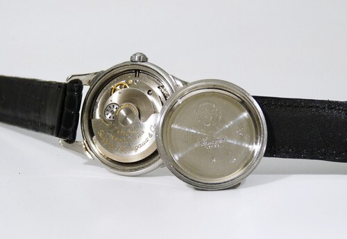 GIRARD-PERREGAUX Gyromatic Stainless Steel. Vintage Watch w/Gun Metal Blue Hands