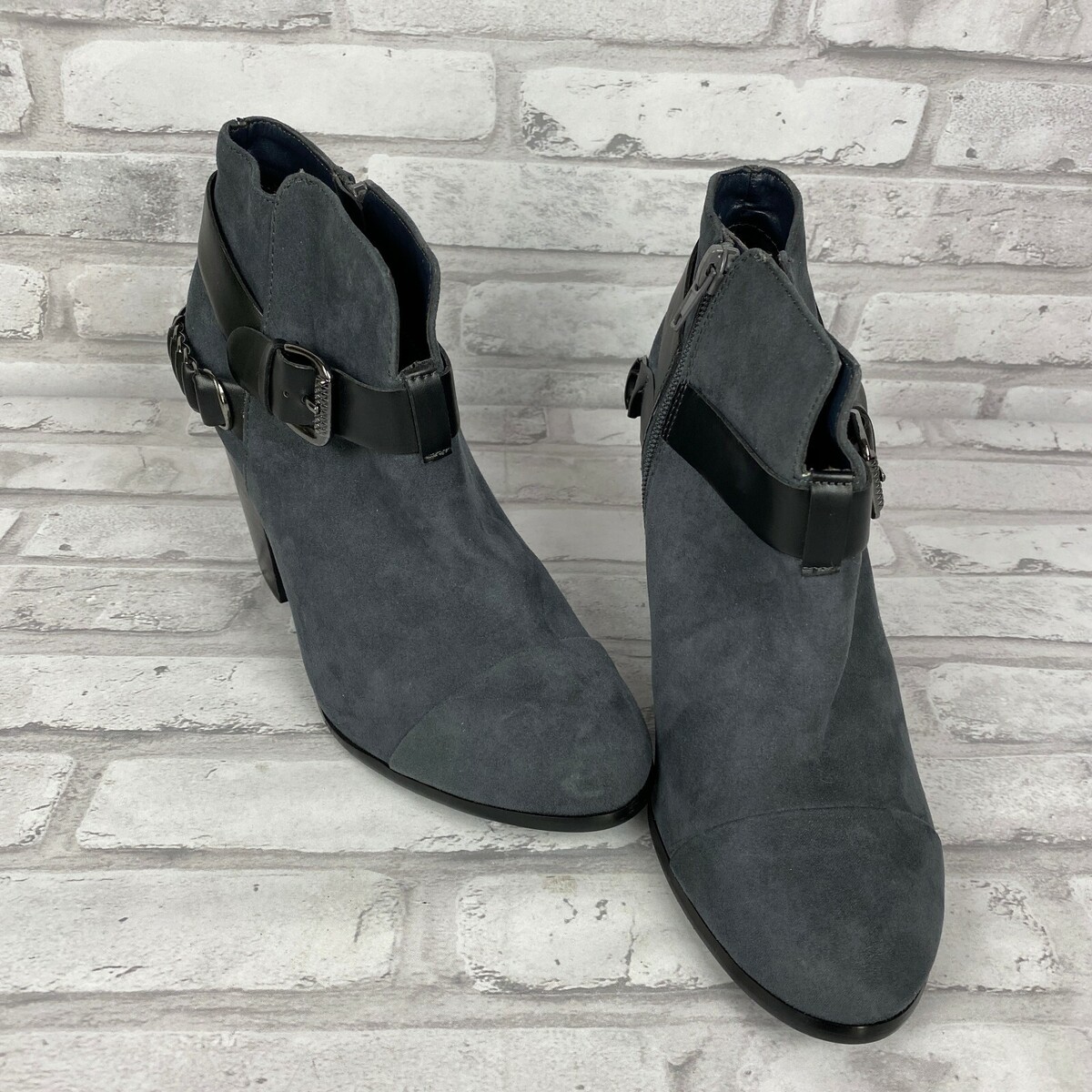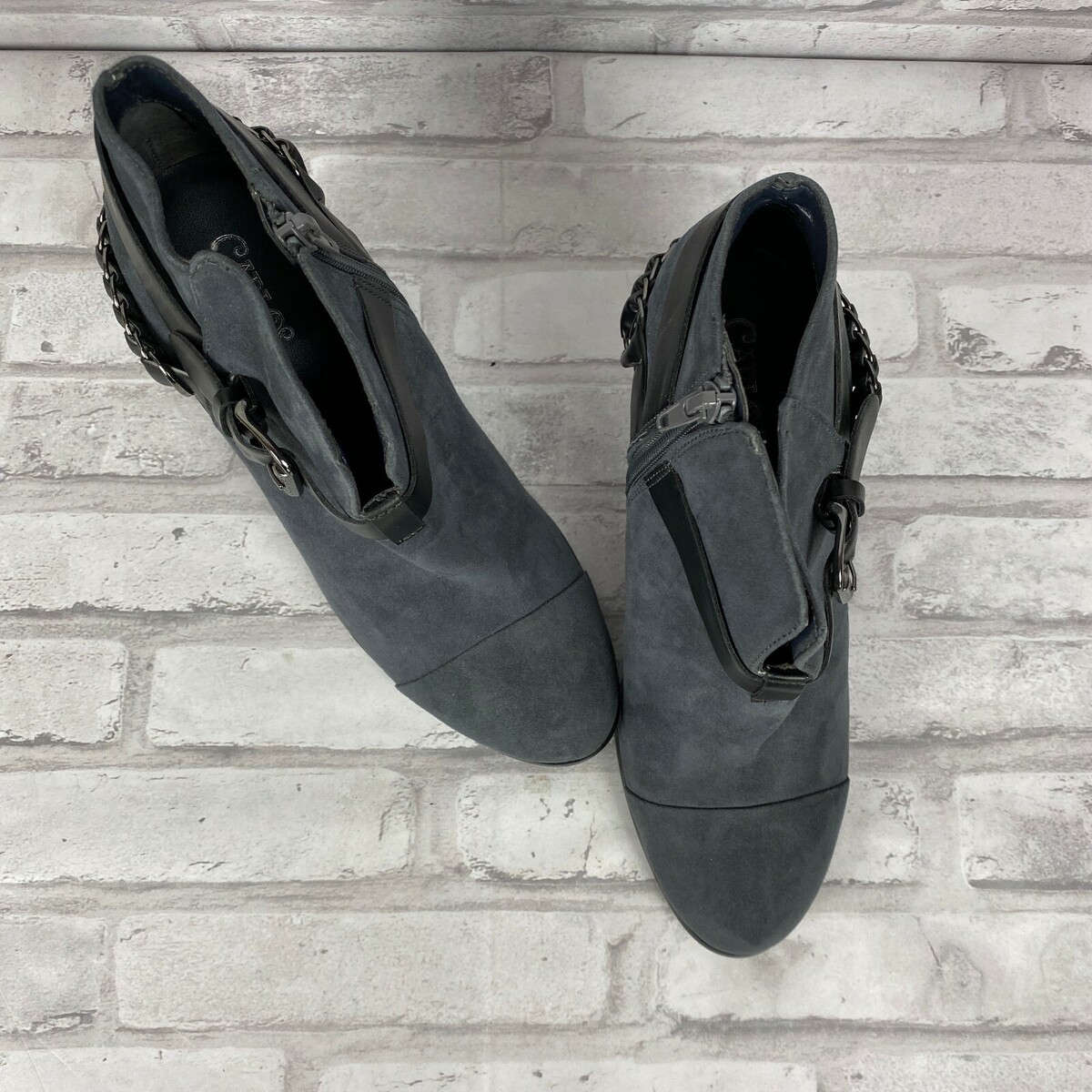 Carlos Santana 7.5 Macomb Gray/Black Chain Buckle Zip Ankle Boots Booties Suede