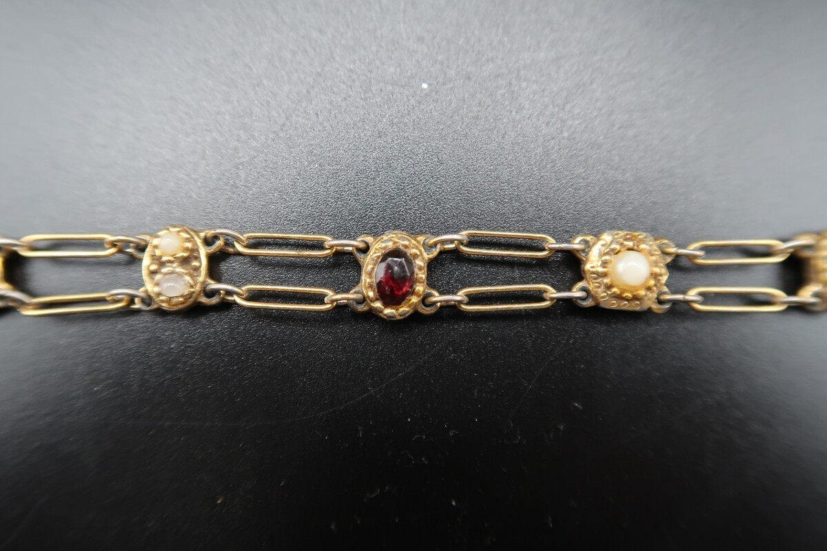 Vtg Bracelet w/ Multi-Colored Cabochons & Seed Beads Gold Tone MCM Timeless