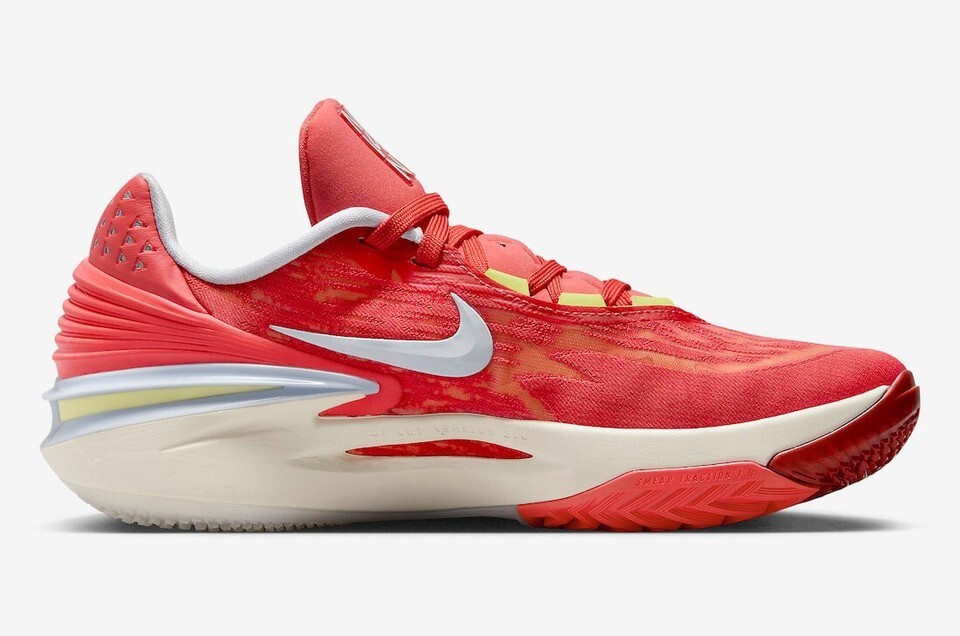 This offering of the Nike Zoom GT Cut 2 features a tonal Red upper made of breathable, lightweight engineered mesh. White Swoosh logos are placed on the sides, while Lemon Twist accents the tucked-away lace loops and ?NY vs. NY? branding on the tongues. React technology provides cushioning, while Air Zoom Strobel cushioning stacked with a Zoom Air unit in the heel provides a responsive ride.