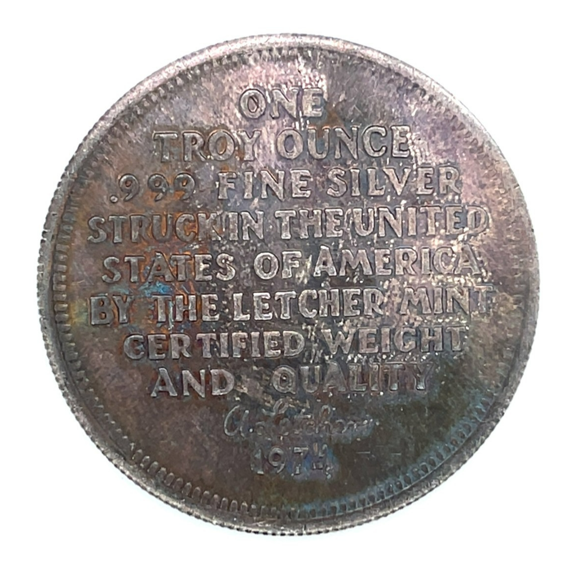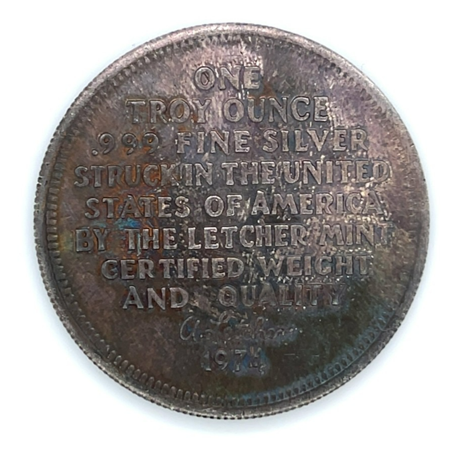 Raro 1974 Letcher Mint Standing Eagle One Troy Oz .999 tondo in argento pregiato