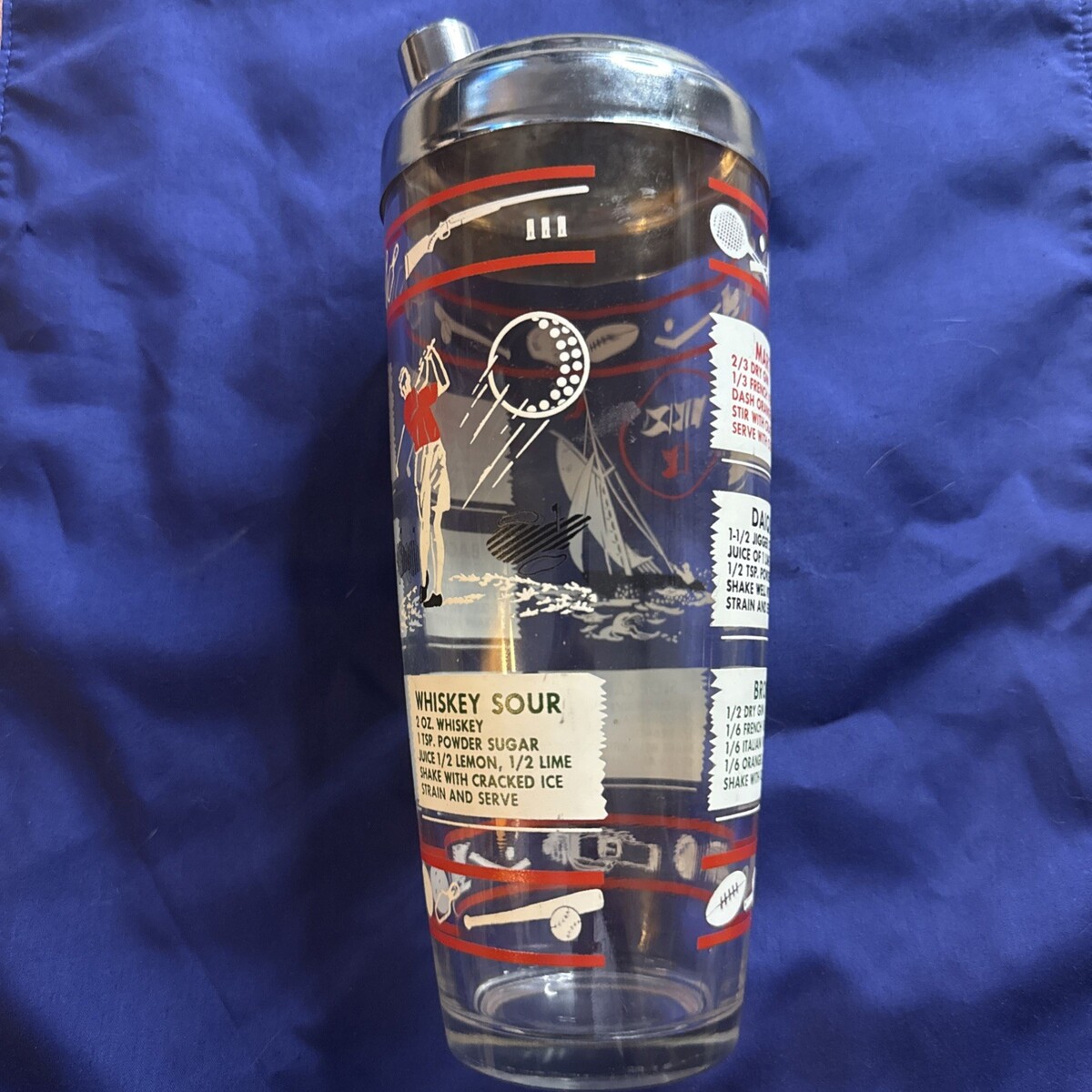 Hazel Atlas Cocktail Shaker Glass Mixer Golf Sailing Sports Vintage With Lid
