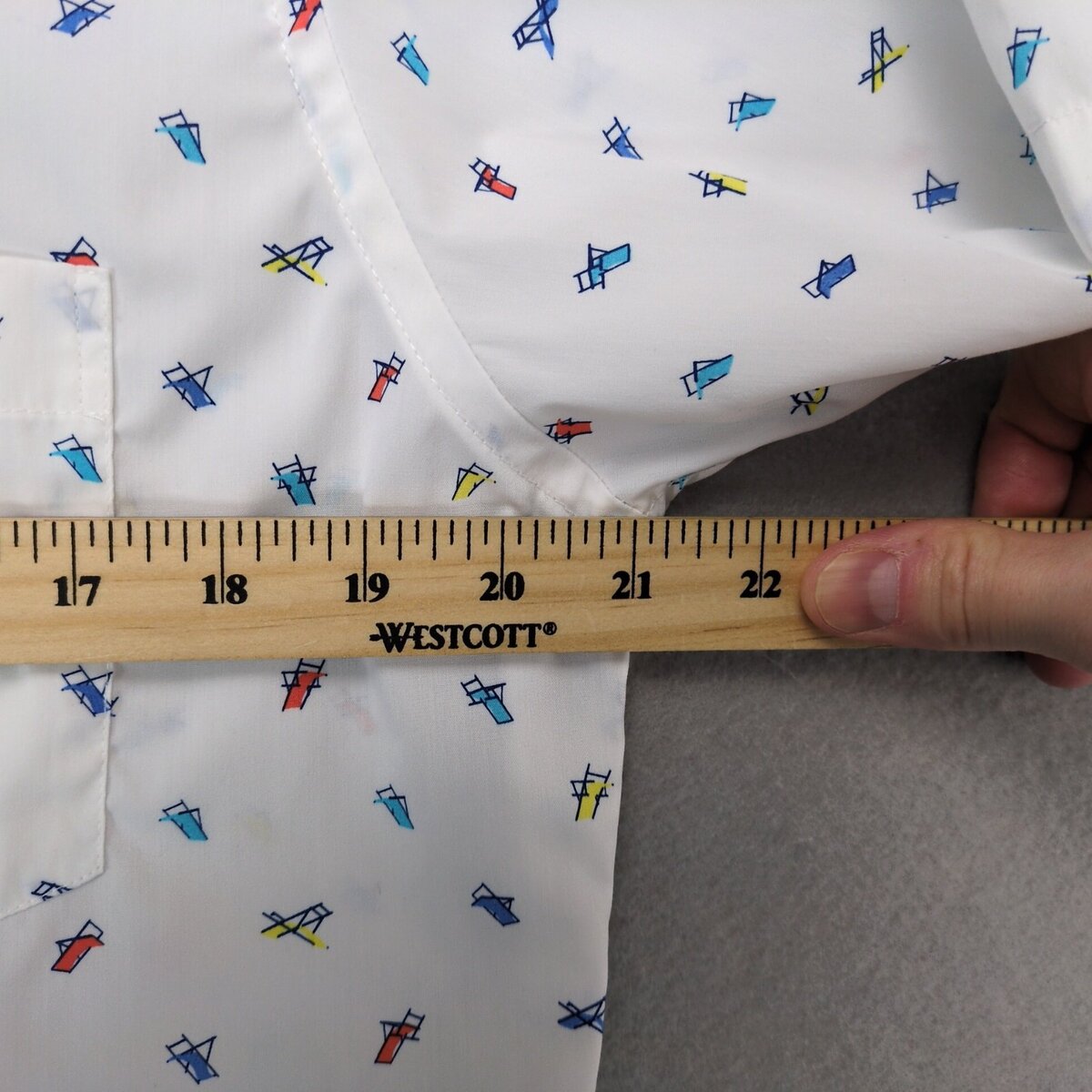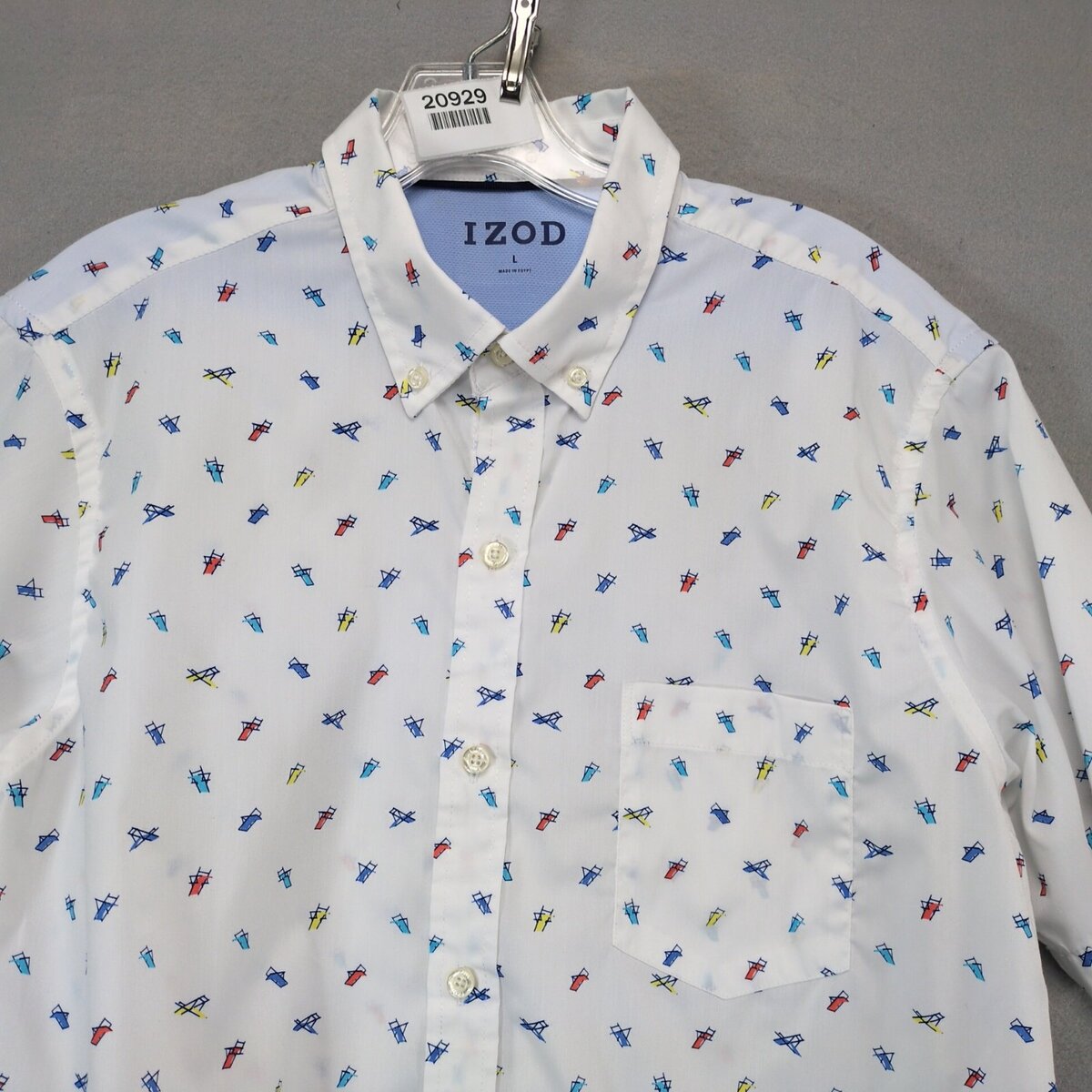Features: Short Sleeve, Regular Fit, Collared, Easy Care, Pockets, Lightweight, Geometric Pattern, Logo, Button Closure, Machine Washable