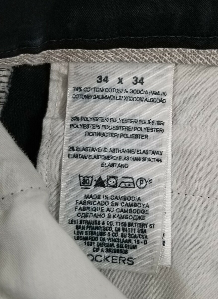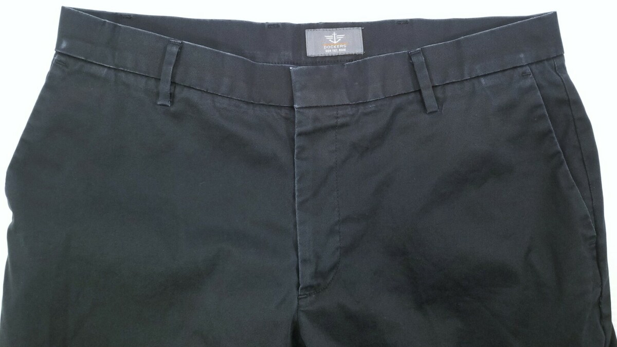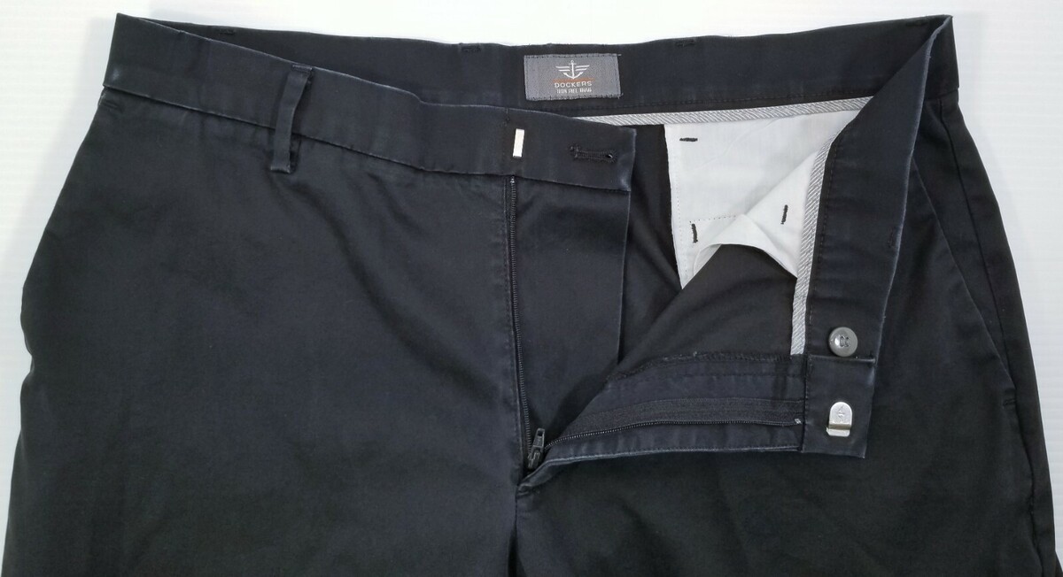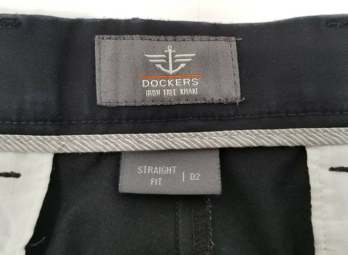 V) Dockers Straight Fit D2 Iron Free Khaki Black Pants 34x34 Flat Front