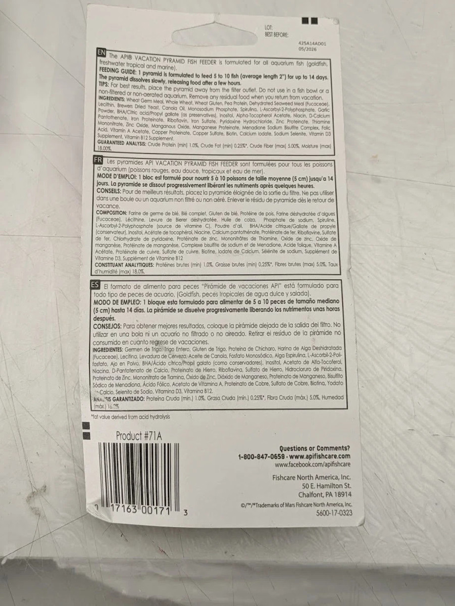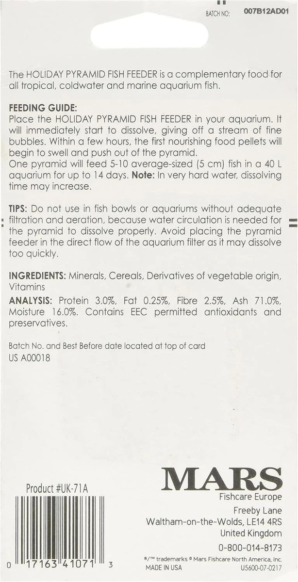 Automatic Pyramid Fish Feeder 14 Days API Vacation Holiday Feeder Block 5-10 Goldfish 2Pack
