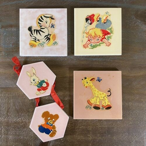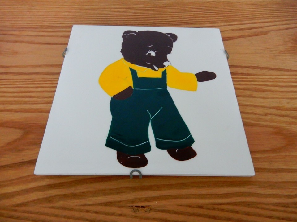 Cute vintage Wheeling Cushion hand painted fancy bear trivet wall hanging tile