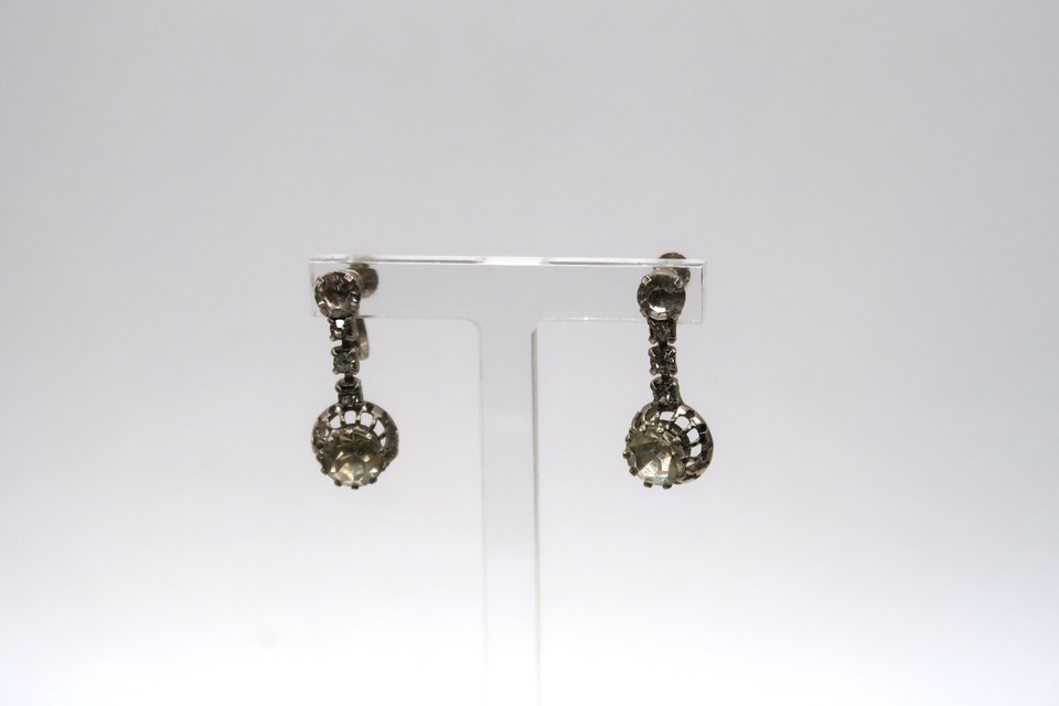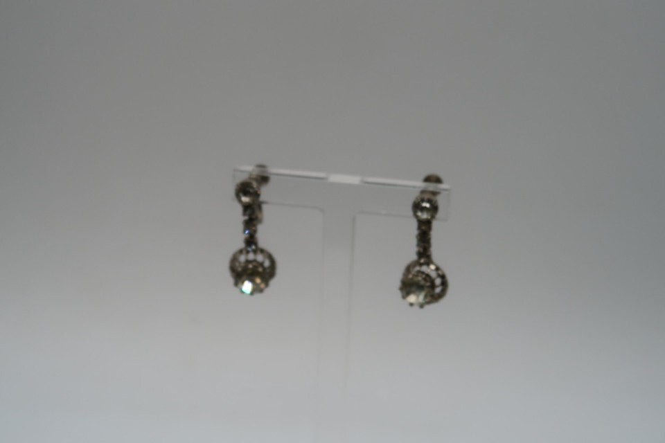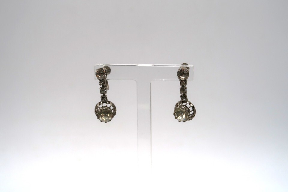 Vtg White Rhinetone Screwback Dangle and similar items