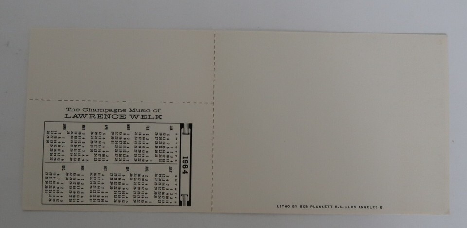 VTG Lawrence Welk 1964 Happy Holiday Note Ephemera Calendar Litho Bob Plunkett