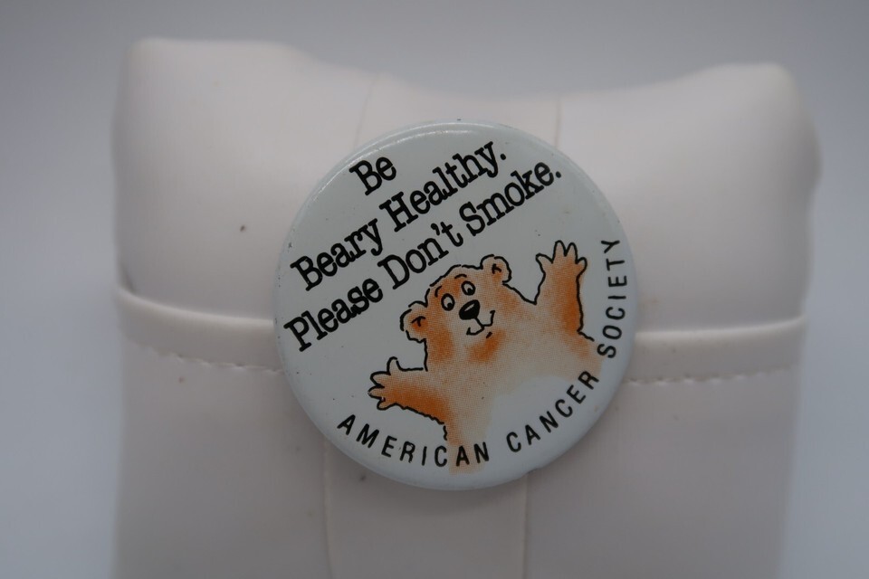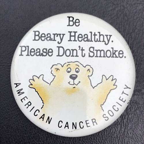 Vtg American Cancer Society BE BEARY HEALTHY PLEASE DON'T SMOKE Pin Back Button