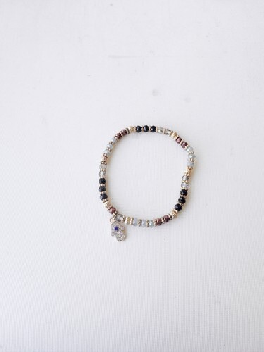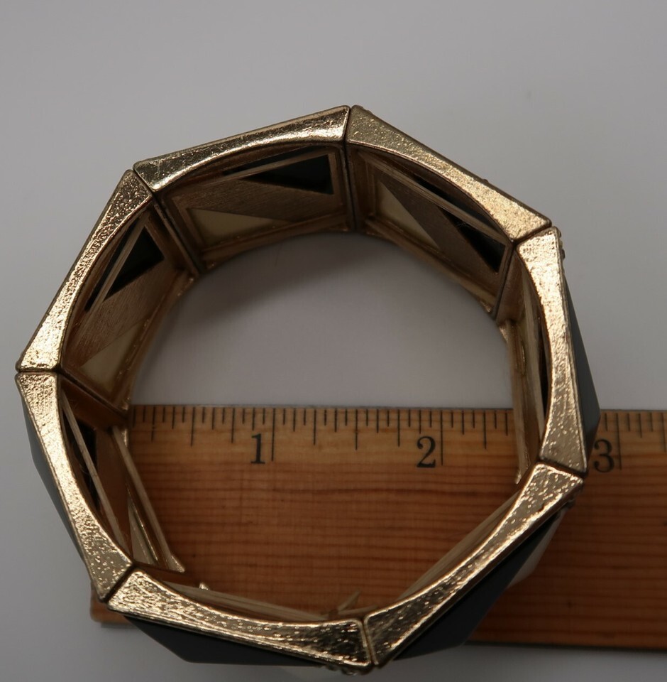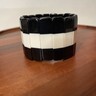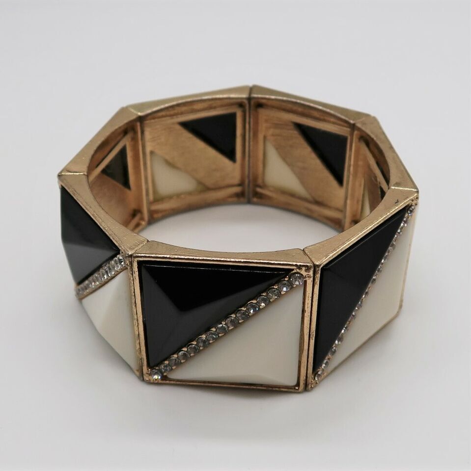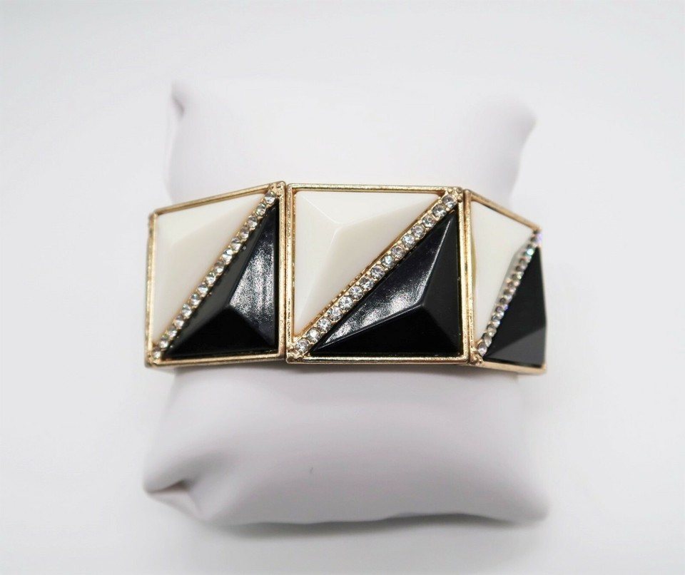 Vtg black & white geometric patterned stretch bracelet rhinestone accents
