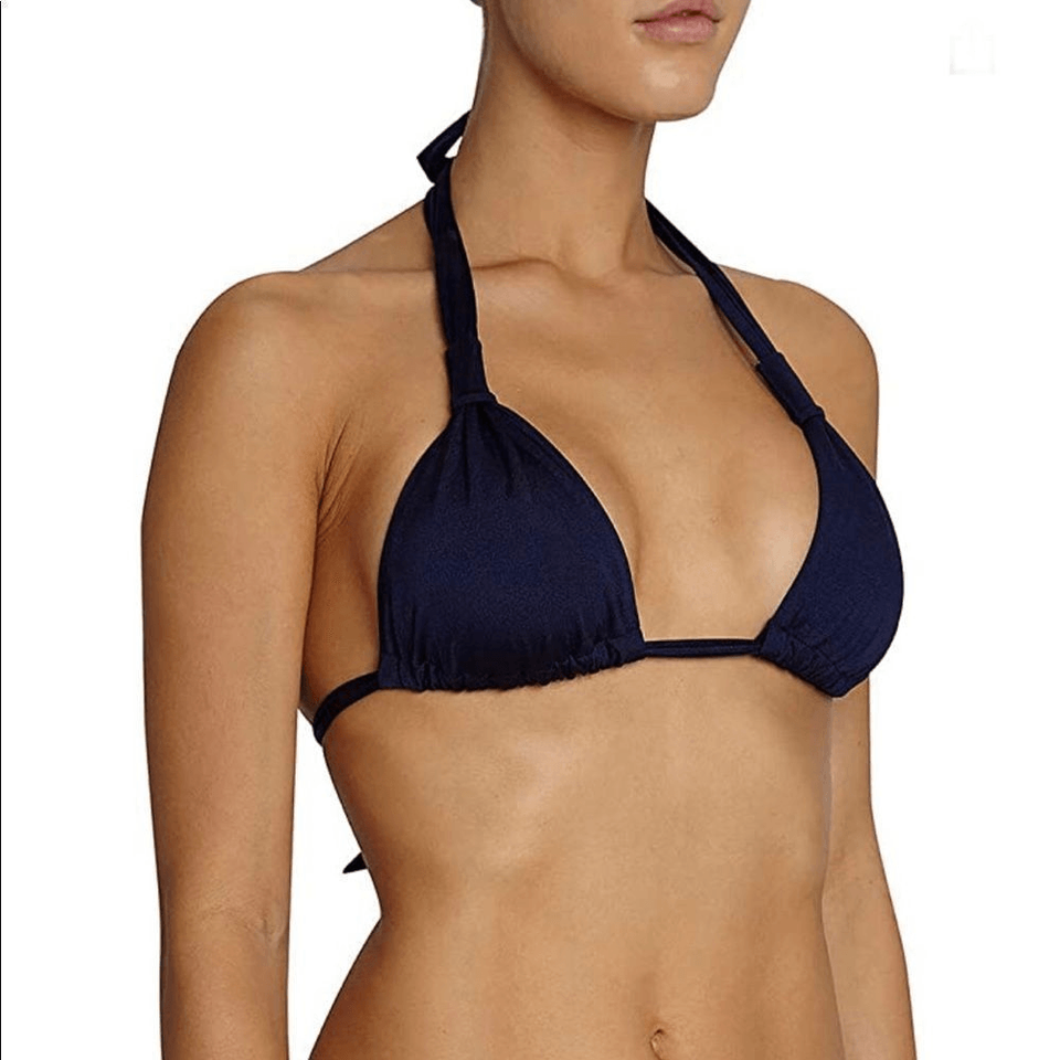 New with tags, from Henri Bendel. Eberjey Bikini Top Beach Glow Lennon TOP ONLY New with Tags Color: Deep Blue Size: Medium Body: 80% Nylon, 20% Spandex; Liner: 90% Polyester, 10% Spandex Made in US Hand Wash Only Classic deep navy color Adjustable sliders Removable soft cups.