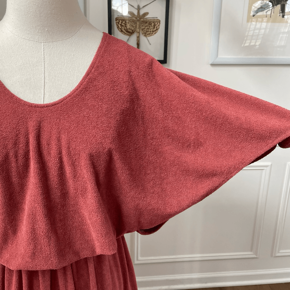 Vintage 70s Patty O’Neil Rusty Brown Blouson Midi Dress XS