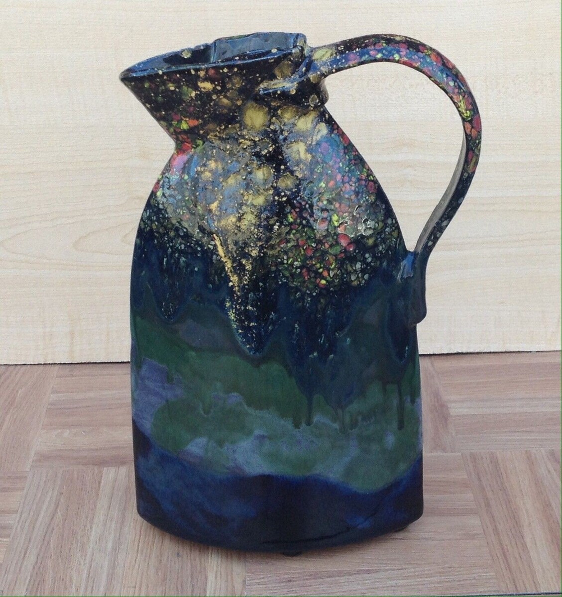 Up for purchase is a C. SCHAFER Handmade Home Decor Multi-Color Ceramic Pitcher Vase in EXCELLENT condition.